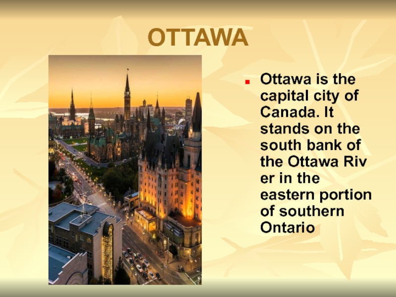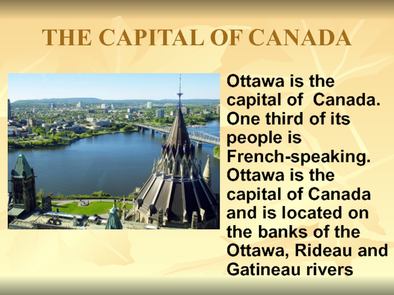 of its people is French-speaking. Ottawa is the capital of Canada and is located on the banks of the Ottawa, Rideau and Gatineau rivers