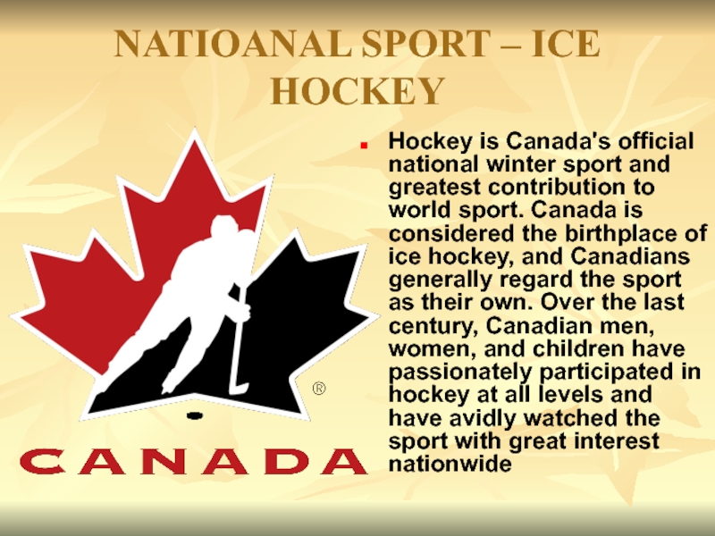 Слайд 16NATIOANAL SPORT – ICE HOCKEY