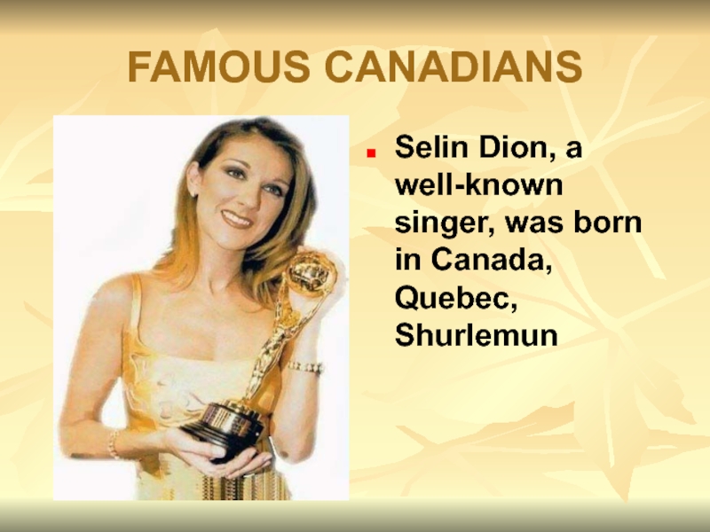Selin Dion, a well-known singer, was born in Canada, Quebec,