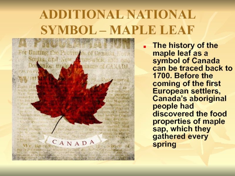 Слайд 13ADDITIONAL NATIONAL SYMBOL – MAPLE LEAF