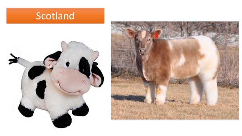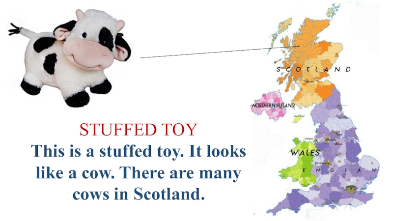 This is a stuffed toy. It looks like a cow. There are many cows in Scotland.
