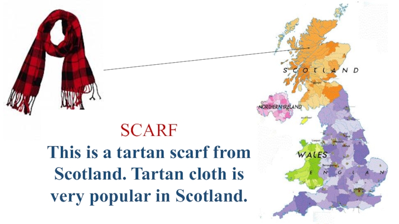 This is a tartan scarf from Scotland. Tartan cloth is very popular in Scotland.