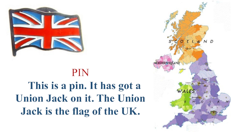 This is a pin. It has got a Union Jack on it. The Union Jack is the flag of the UK.