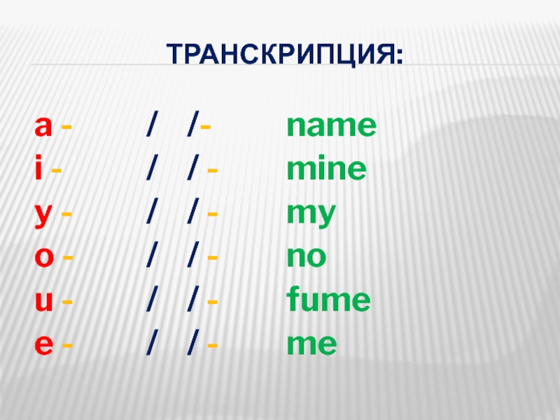 ТРАНСКРИПЦИЯ:a - 			/  /- 			namei - 			/  / - 			miney - 			/  / -