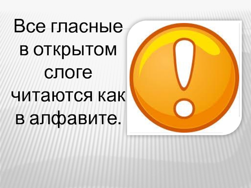 Слайд 3Все гласные в открытом слоге читаются как в алфавите.