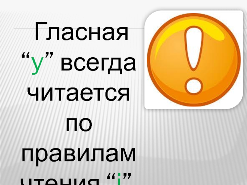 Слайд 7 Гласная “y” всегда читается по правилам чтения “i”.