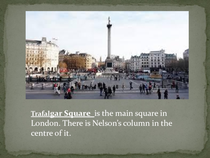 Слайд 8Trafalgar Square is the main square in London. There is Nelson’s