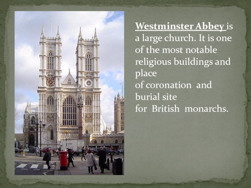 Слайд 7Westminster Abbey is a large church. It is one of the