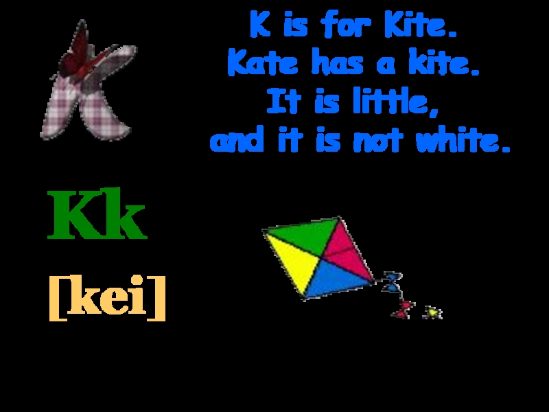 Слайд 10K is for Kite. Kate has a kite. It is little, and