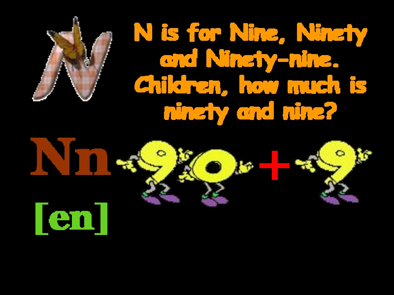 Слайд 19N is for Nine, Ninety and Ninety-nine. Children, how much is ninety