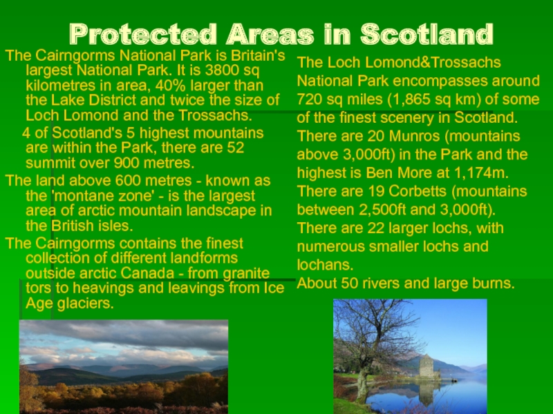The Loch Lomond&Trossachs National Park encompasses around 720 sq miles (1,865 sq km) of some of the finest scenery in Scotland.