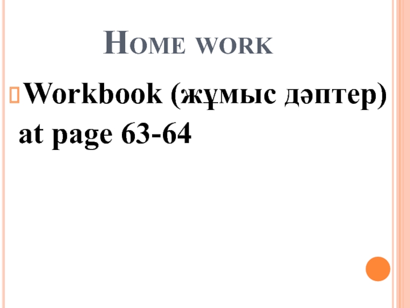 Home workWorkbook (жұмыс дәптер) at page 63-64