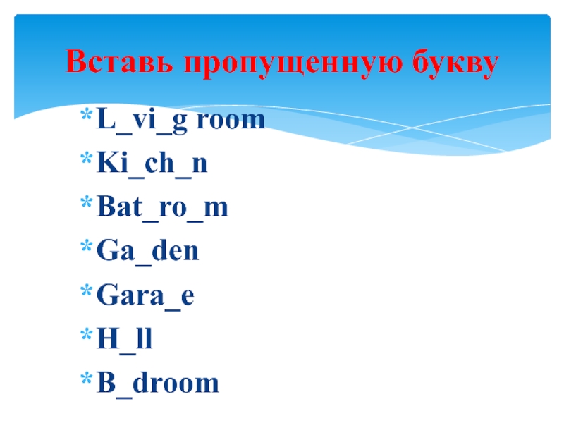 L_vi_g roomKi_ch_nBat_ro_mGa_denGara_eH_llB_droomВставь пропущенную букву