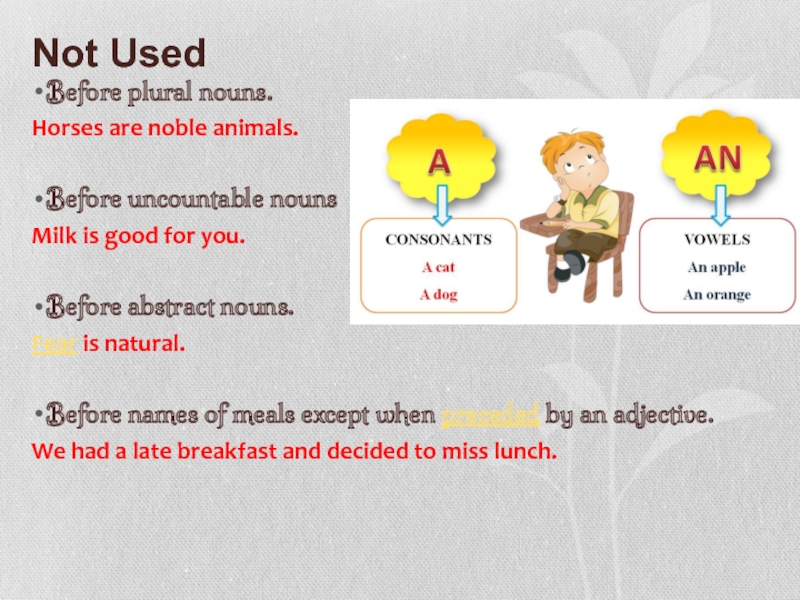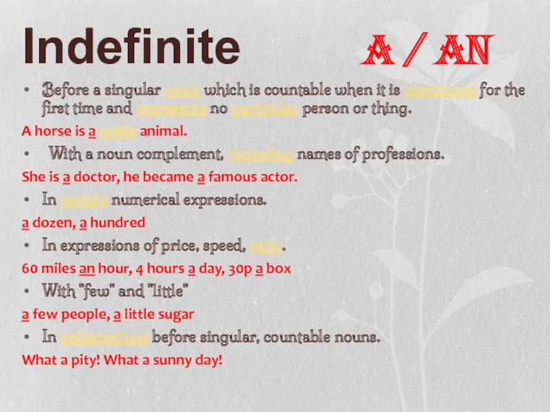 Before a singular noun which is countable when it is mentioned for the first time and represents no particular person or thing.