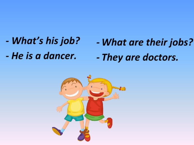 - What’s his job? - He is a dancer.What are their jobs?They are doctors.