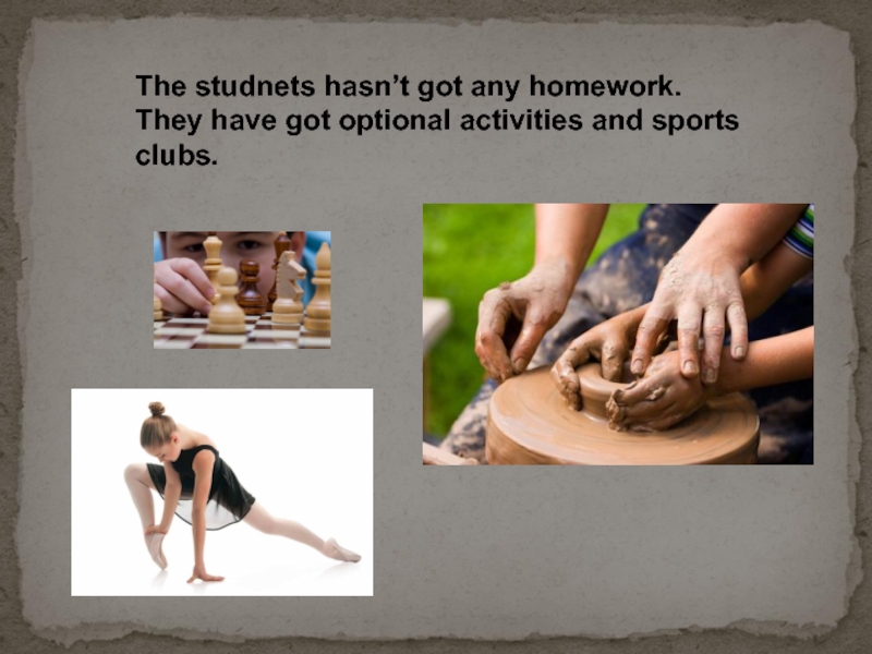 Слайд 16The studnets hasn’t got any homework. They have got optional activities