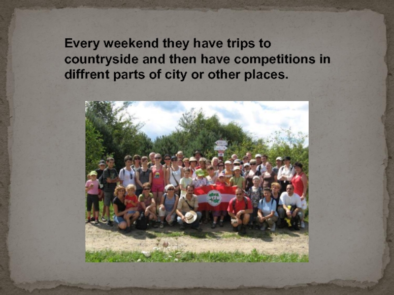 Слайд 18Every weekend they have trips to countryside and then have competitions