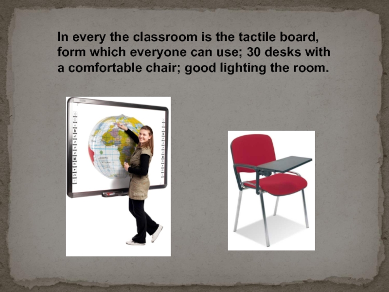 Слайд 14In every the classroom is the tactile board, form which everyone