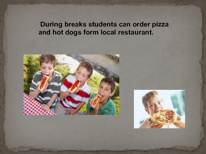 Слайд 15 During breaks students can order pizza and hot dogs form