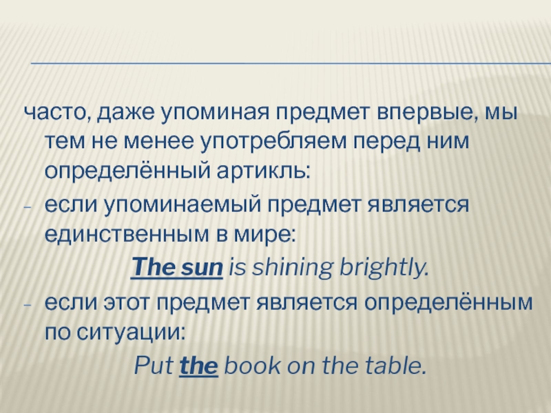 Слайд 10часто, даже упоминая предмет впервые, мы тем не менее употребляем перед