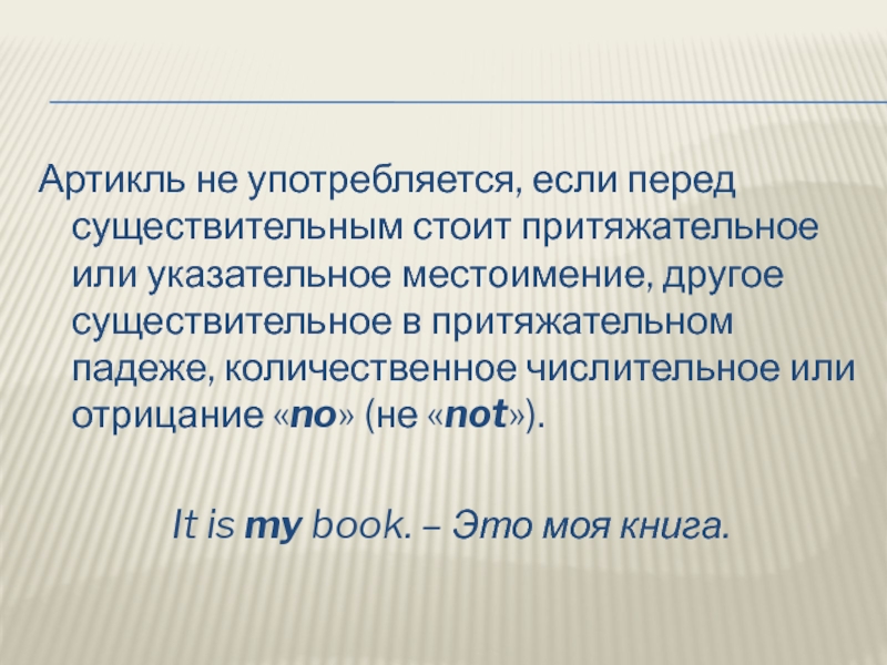 Слайд 6Артикль не употребляется, если перед существительным стоит притяжательное или указательное местоимение,