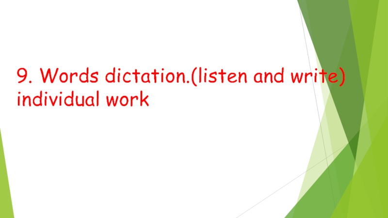 9. Words dictation.(listen and write) individual work . 5 min 5 balls