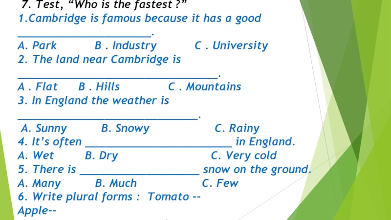 6. Test, “Who is the fastest ?” 4 min 6 balls