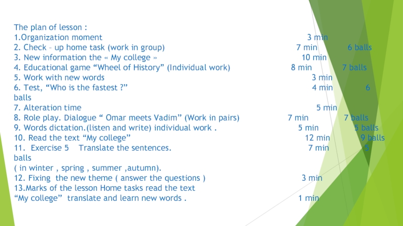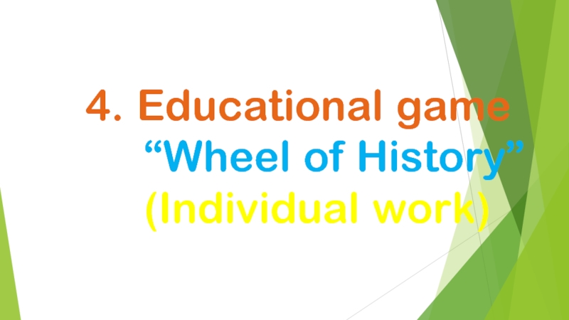 4. Educational game “Wheel of History” (Individual work) 8 min 7 balls