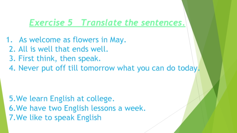 11. Exercise 5 Translate the sentences. 7 min 5 balls