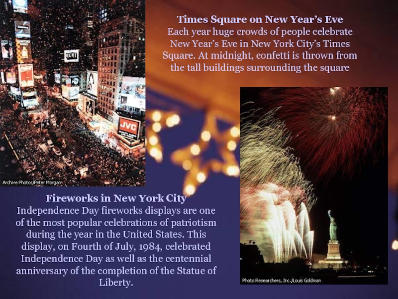 celebrate New Year’s Eve in New York City’s Times Square. At midnight, confetti is thrown from the tall buildings surrounding the square