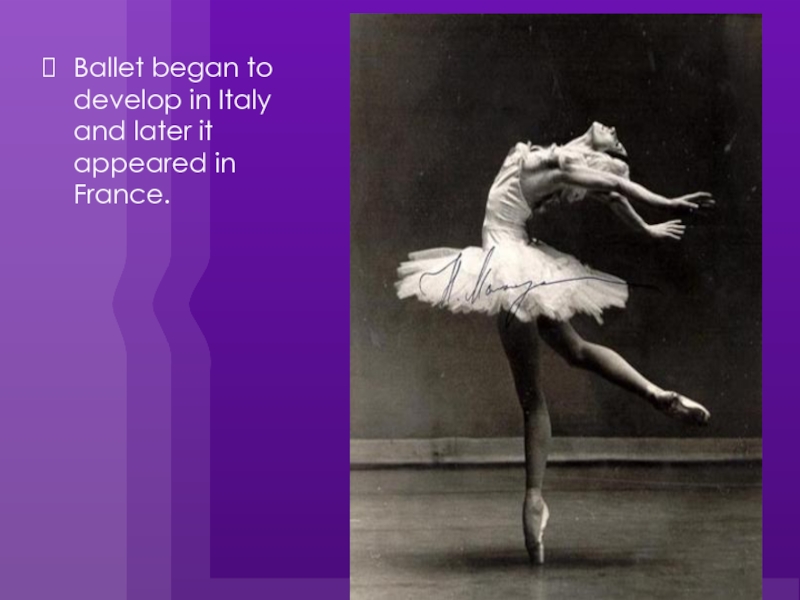 Слайд 9Ballet began to develop in Italy and later it appeared in