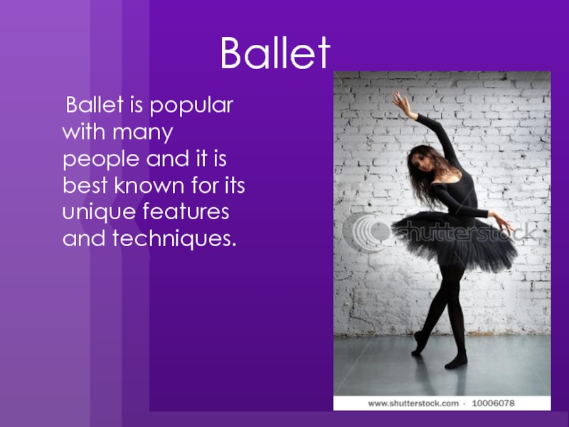 Ballet  Ballet is popular with many people and it is best known for its unique features