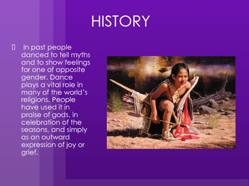 HISTORY In past people danced to tell myths and to show feelings for one of opposite gender.