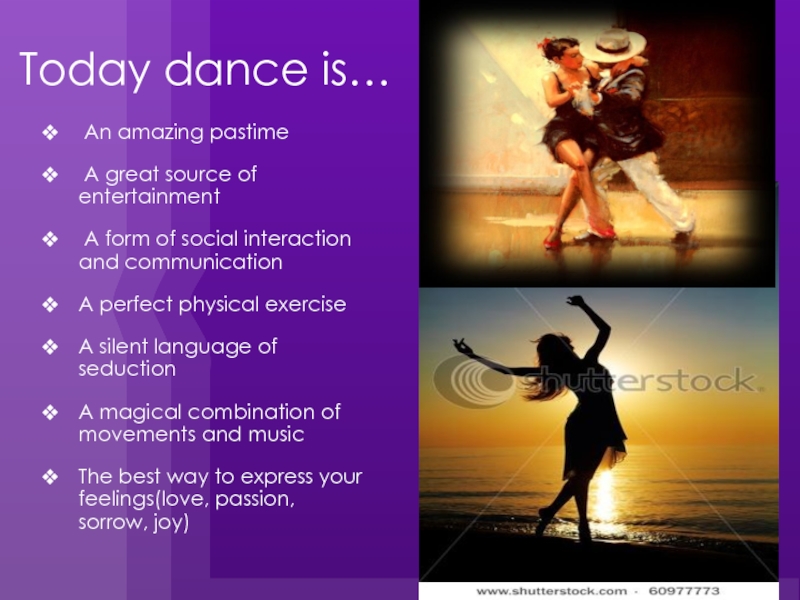 Today dance is… An amazing pastime A great source of entertainment A form of social interaction and