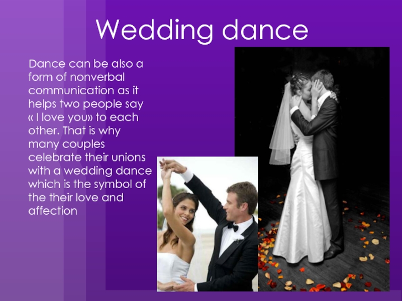 Wedding dance   Dance can be also a form of nonverbal communication as it helps two