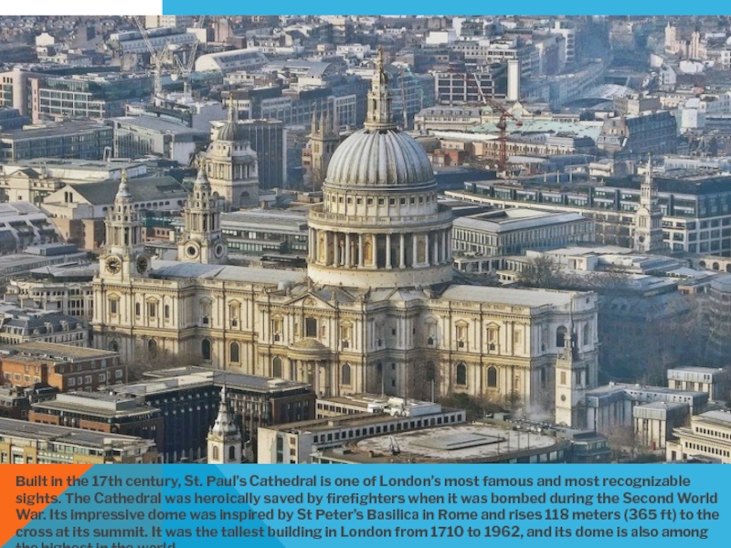 Слайд 4Built in the 17th century, St. Paul’s Cathedral is one of
