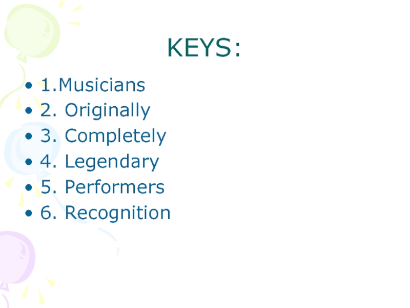 2. ____A style of music invented by black American musicians in the early part of the twentieth century. It has a strong rhythm and often involves improvisation. Famous musicians include Louis Armstrong.