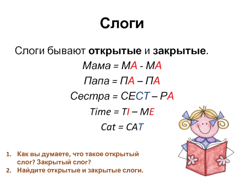 Как вы думаете, что такое открытый слог? Закрытый слог?