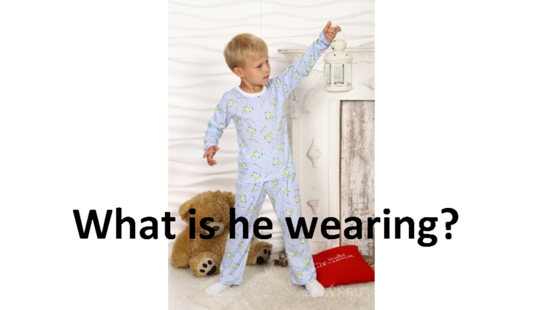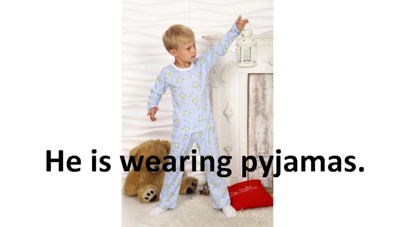 Слайд 2He is wearing pyjamas.