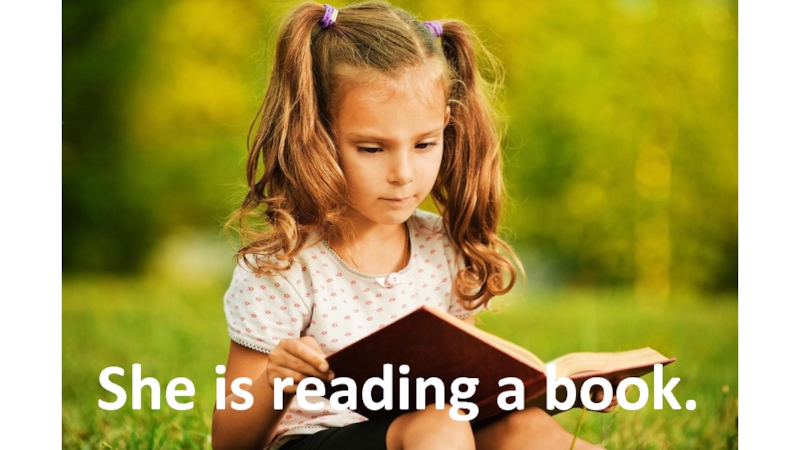 Слайд 6She is reading a book.