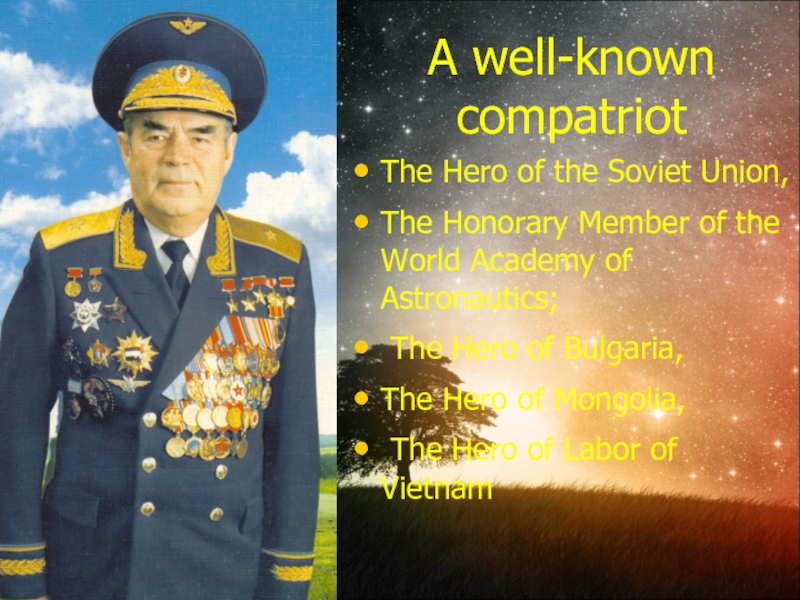 Слайд 1The hero, who brought Chuvashia to the skies