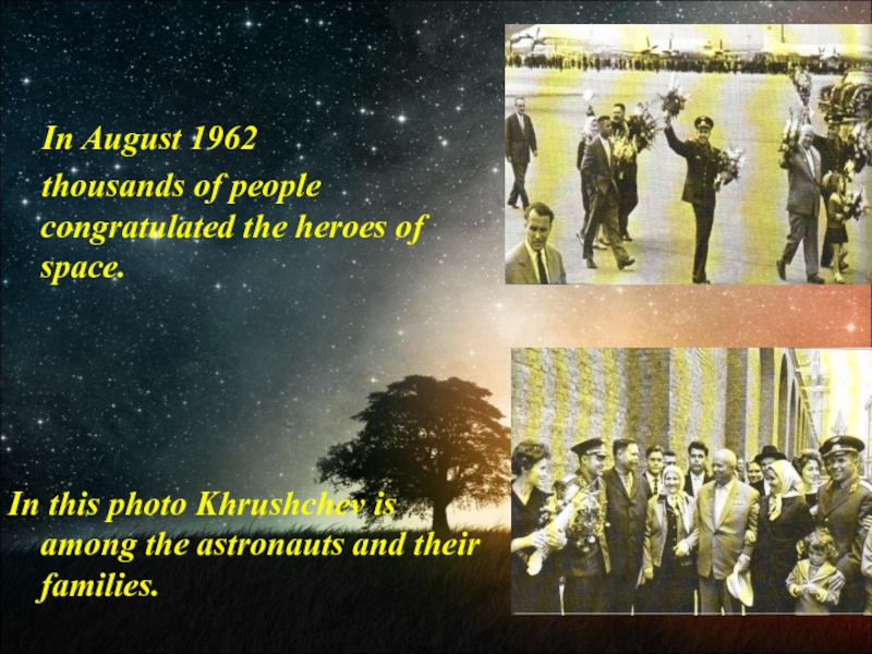 In this photo Khrushchev is among the astronauts and their families.