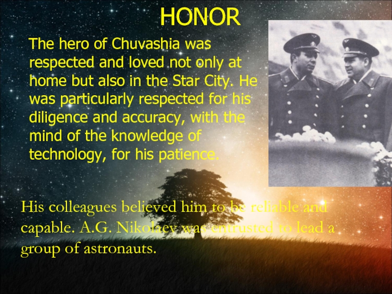 His colleagues believed him to be reliable and capable. A.G. Nikolaev was entrusted to lead a group of astronauts.