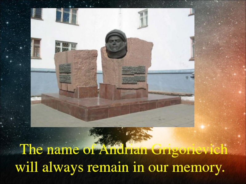 Слайд 33 The name of Andrian Grigorievich will always remain in our