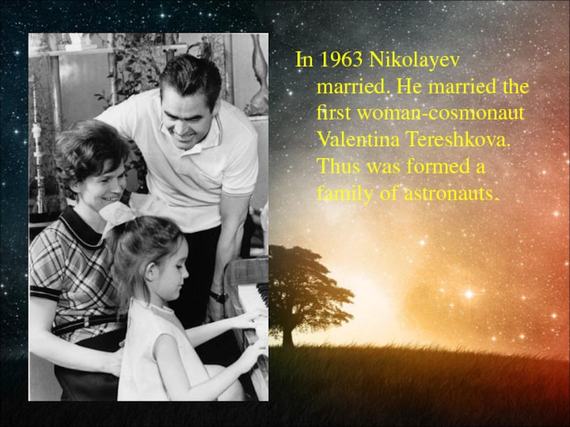 Слайд 22In 1963 Nikolayev married. He married the first woman-cosmonaut Valentina Tereshkova.