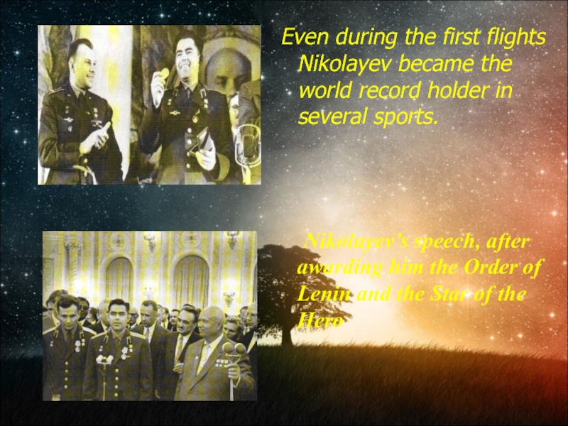 Слайд 17 Even during the first flights Nikolayev became the world record
