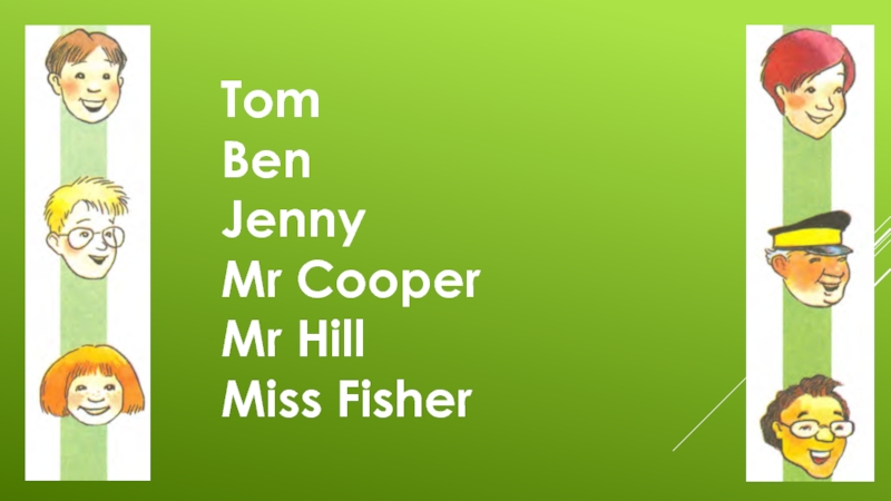 Слайд 6Tom Ben Jenny Mr Cooper Mr Hill Miss Fisher