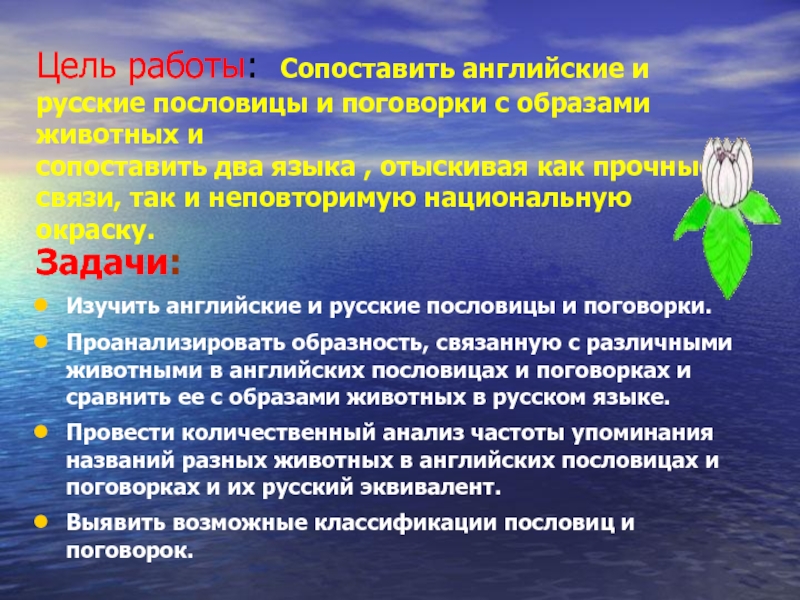Провести количественный анализ частоты упоминания названий разных животных в английских пословицах и поговорках и их русский эквивалент.