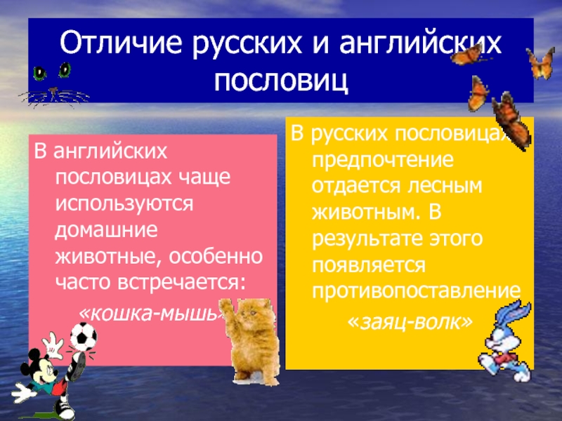 В русских пословицах предпочтение отдается лесным животным. В результате этого появляется противопоставление