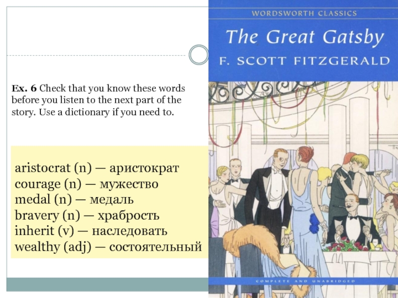 Ex. 6 Check that you know these words before you listen to the next part of the story. Use a dictionary if you need to.